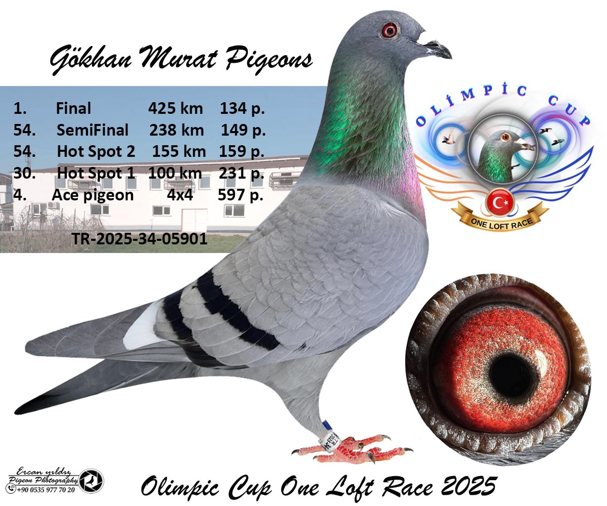 TR25-34-05901 DİŞİ / GÖKHAN MURAT PIGEON - 1 FİNAL 425 KM - 4 ACE PIGEON